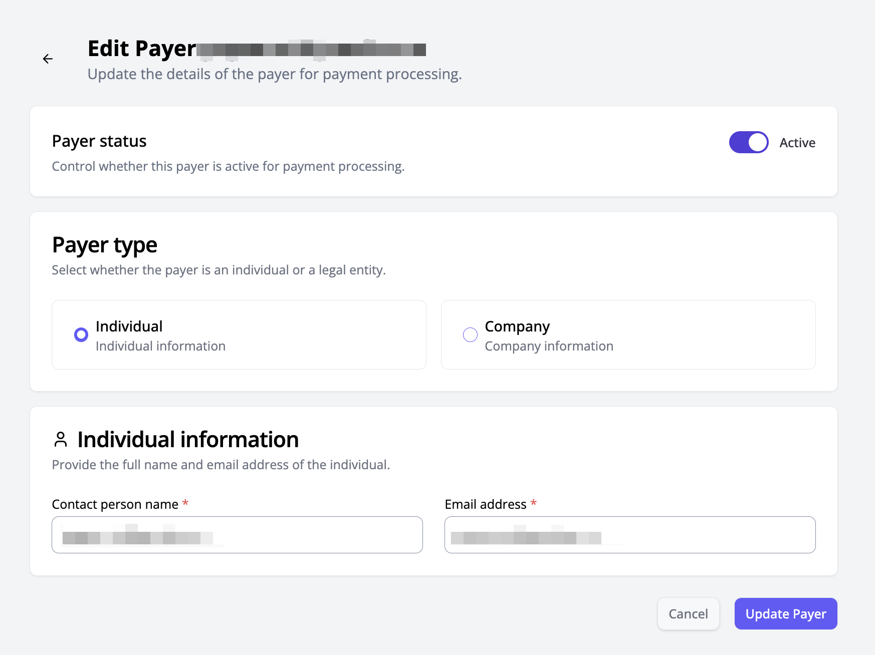 - A form similar to the creation form will open, pre-filled with the payer’s details