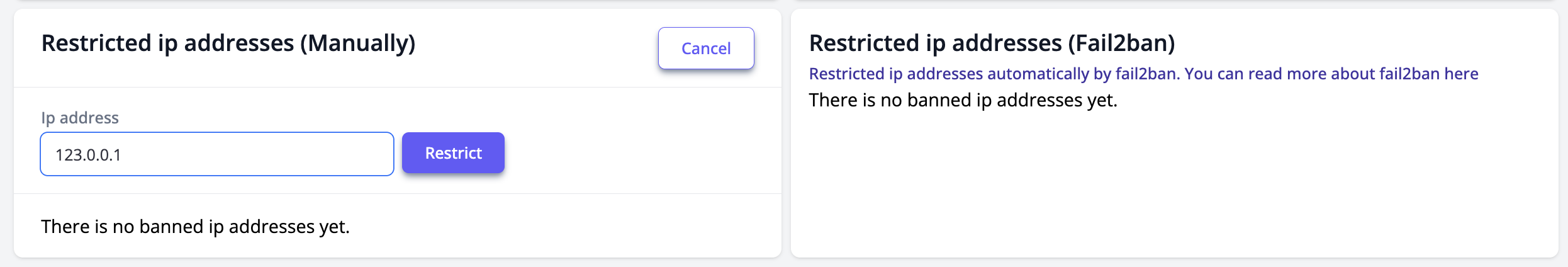 You can restrict access for specific IP addresses manually or check automatic fail2ban list. You can manage IP addresses list and unblock them if it is necessary.