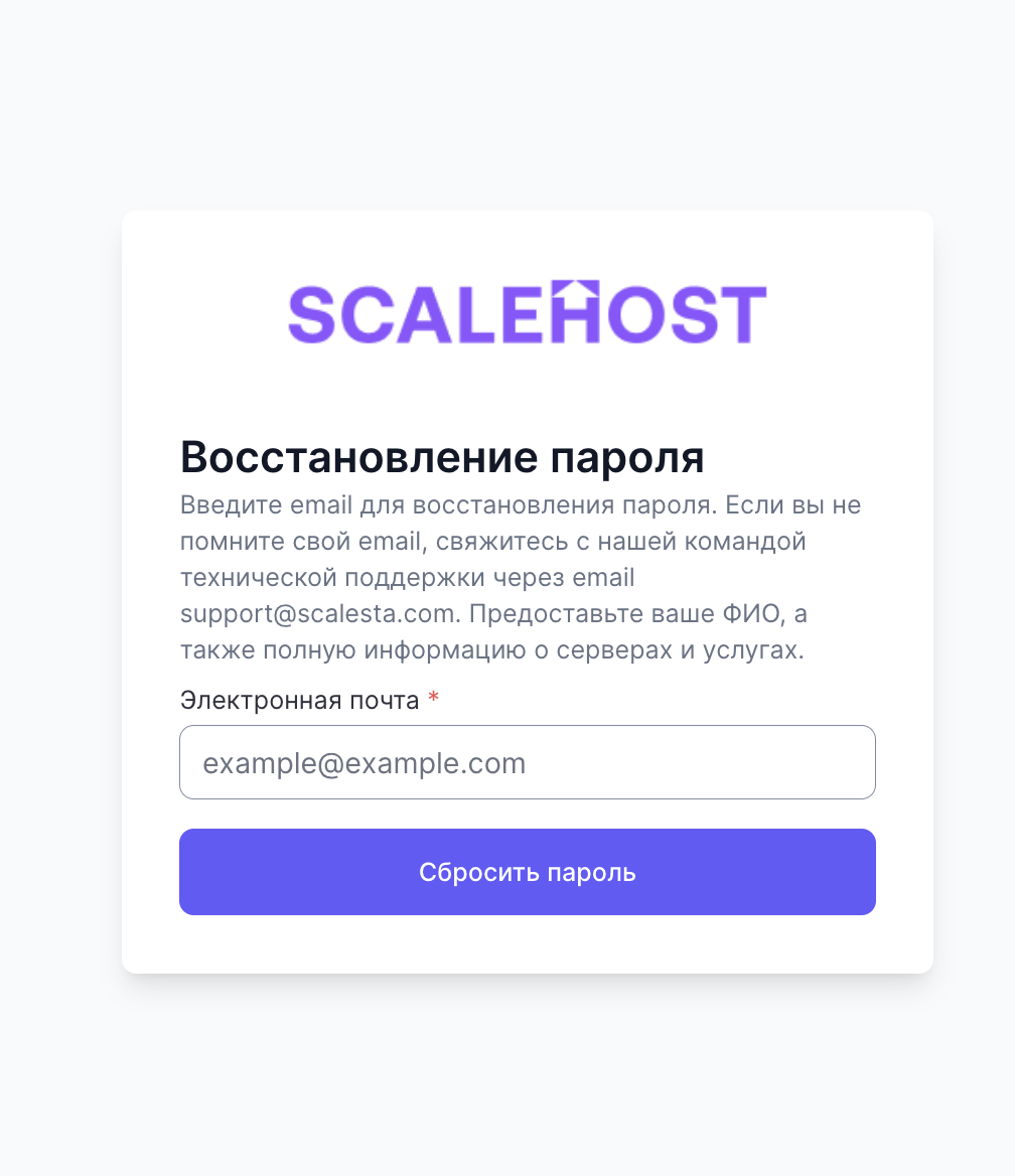 После этого откроется форма восстановления доступа. Введите адрес электронной почты, указанный при регистрации. На него будет отправлено письмо со ссылкой для задания нового пароля.