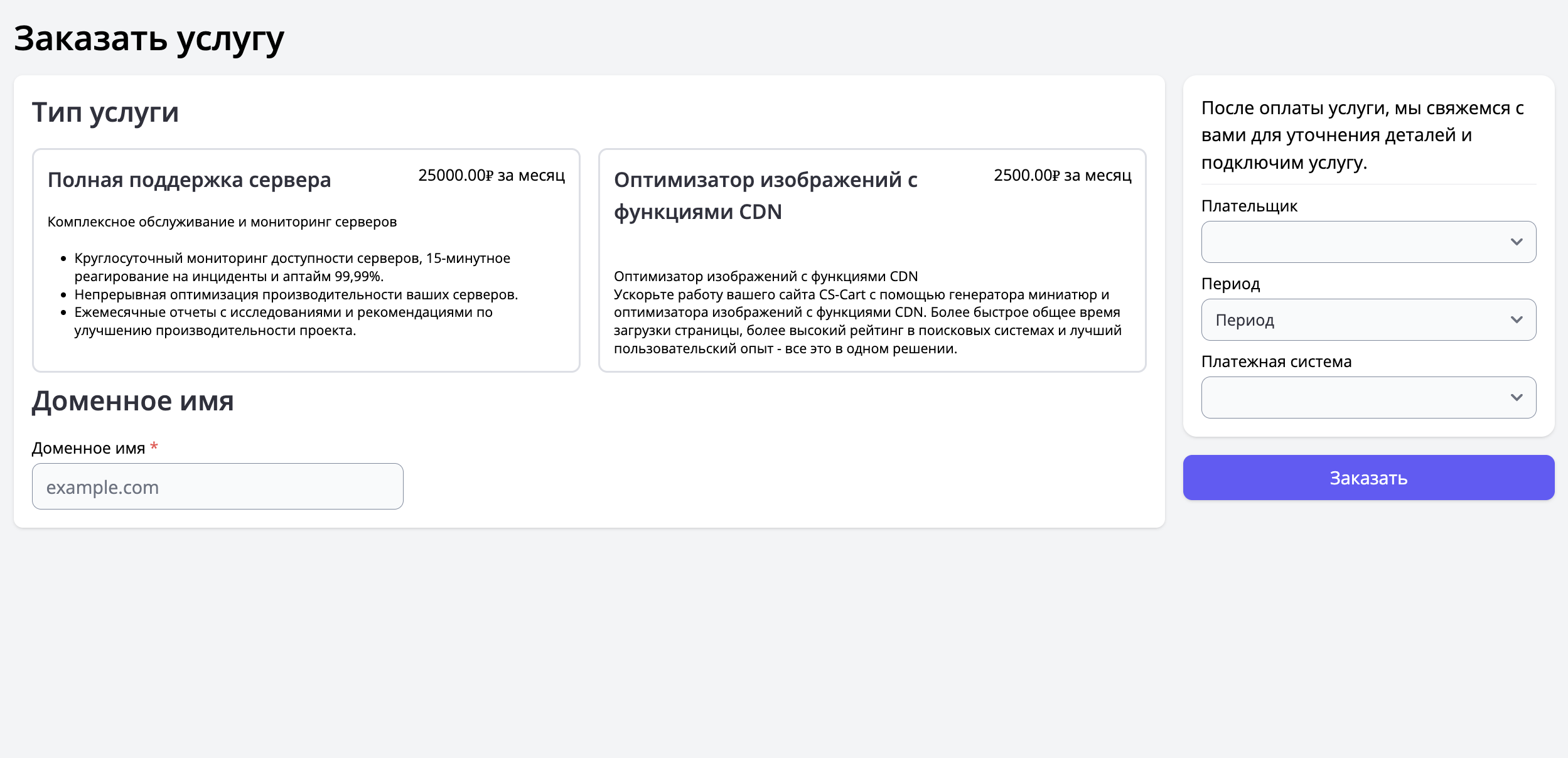 После заказа вы будете перенаправлены на страницу оплаты, а ваша услуга будет отображена в списке в статусе "Заказана".
