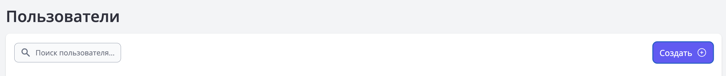 Для создания нового пользователя, войдите в панель управления и откройте раздел Пользователи. Затем нажмите кнопку "Создать".